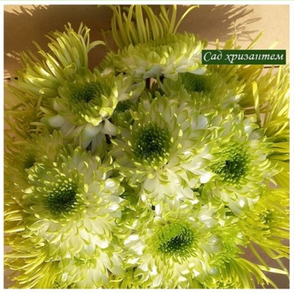 Хризантема выращивается как в одну голову, так и как ветка. Цветок в ветке до 8 см, высота 130 см. Цветение октябрь.