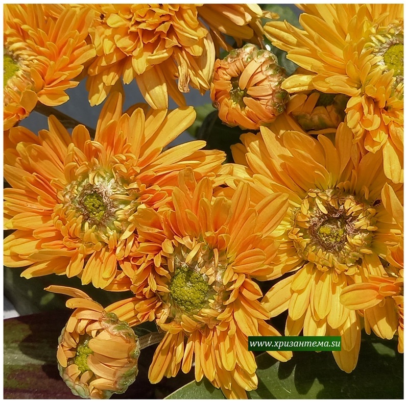 Зимостойкая садовая хризантема, ярко оранжевого цвета, размер цветка от 7-8см, высота до 70см, цветение август - сентябрь.